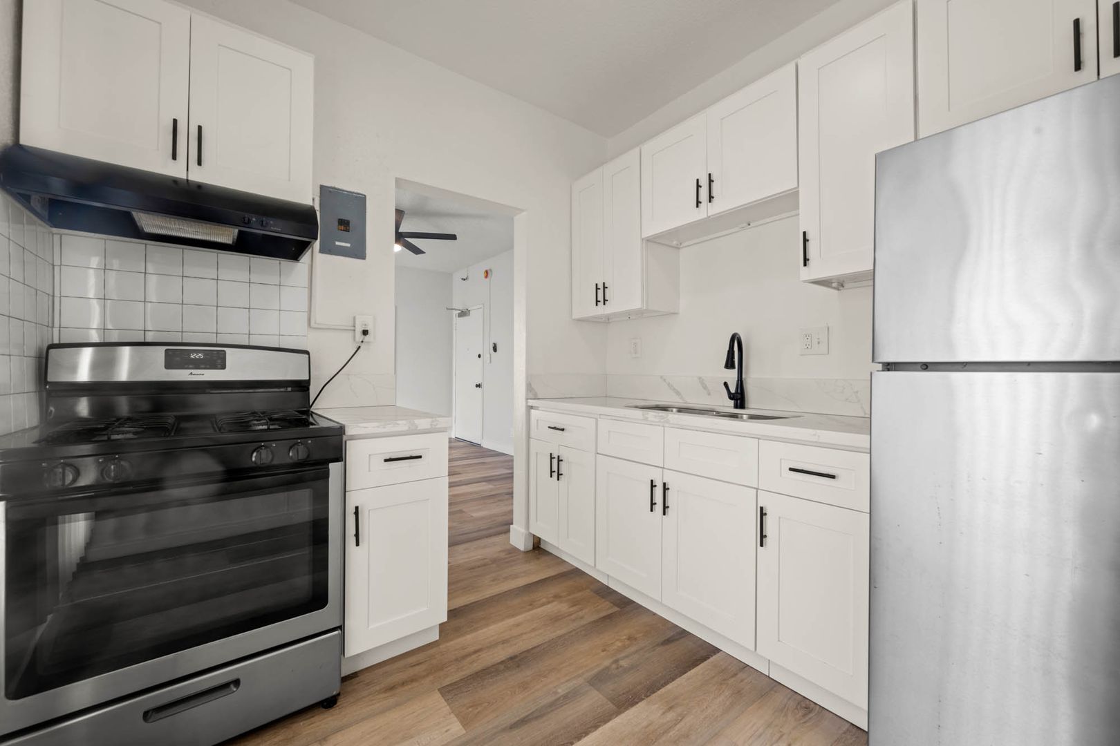 - Appliances Included: Stainless steel Refrigerator and Stove.