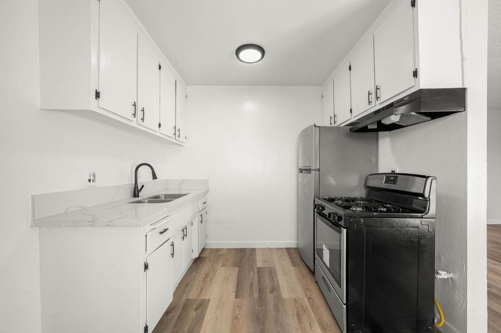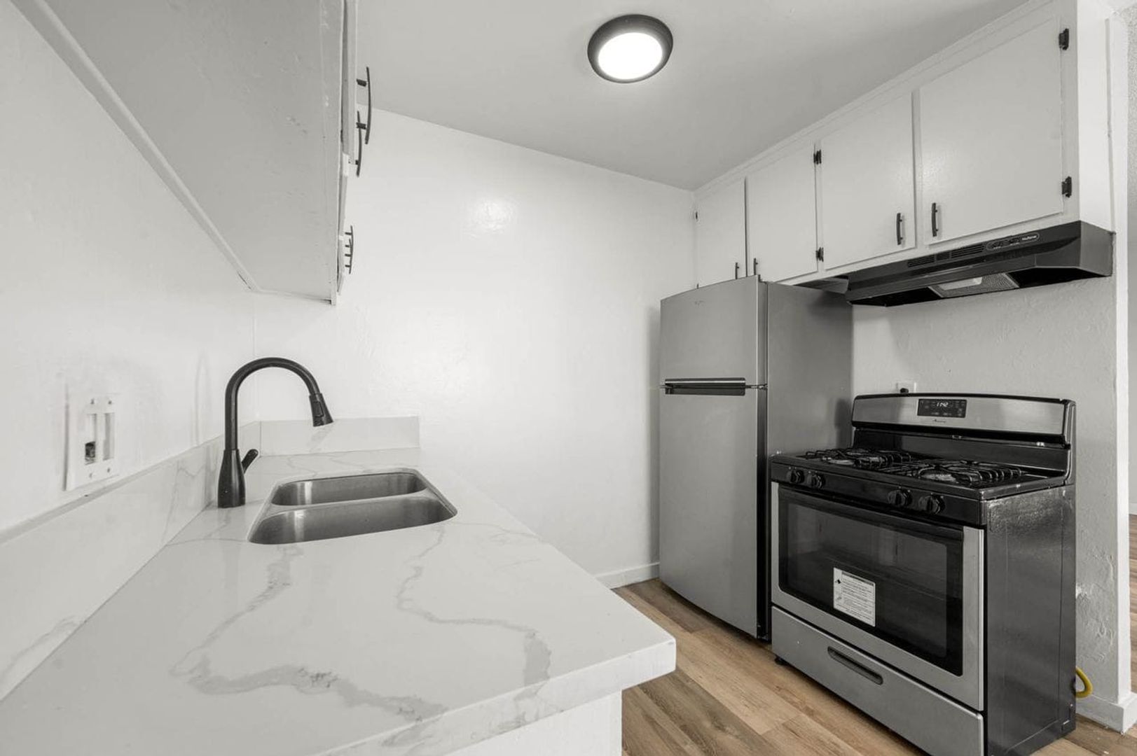 • Appliances Included: Stainless Steel Refrigerator, and Stove.