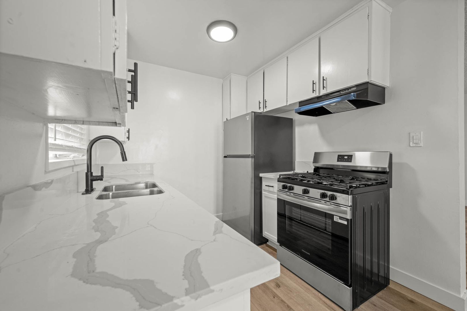 • Appliances Included: Stainless steel Refrigerator, and Stove/Oven.