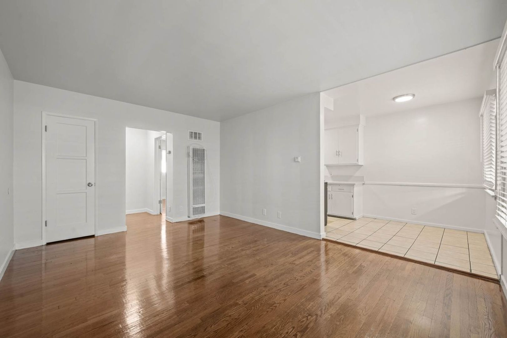 • Wood flooring, and tile in the kitchen and bathroom.